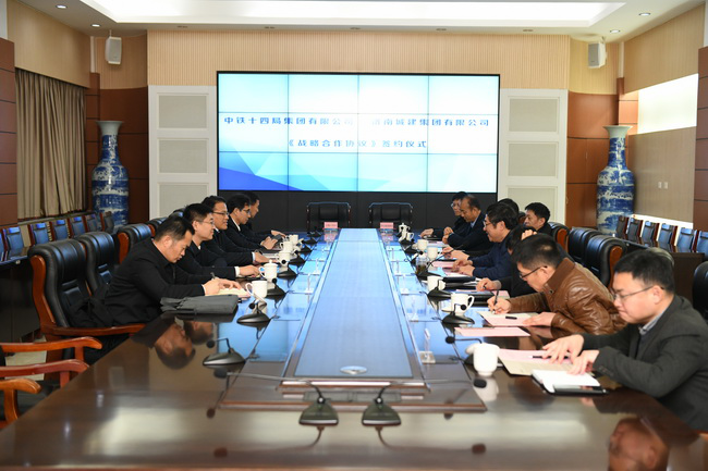 在雙方與會(huì)人員的共同見證下,牟曉巖總經(jīng)理、周長進(jìn)總經(jīng)理分別代表城建集團(tuán)與中鐵十四局集團(tuán)簽訂戰(zhàn)略合作協(xié)議,標(biāo)志著雙方建立起更加深入的戰(zhàn)略合作伙伴關(guān)系。